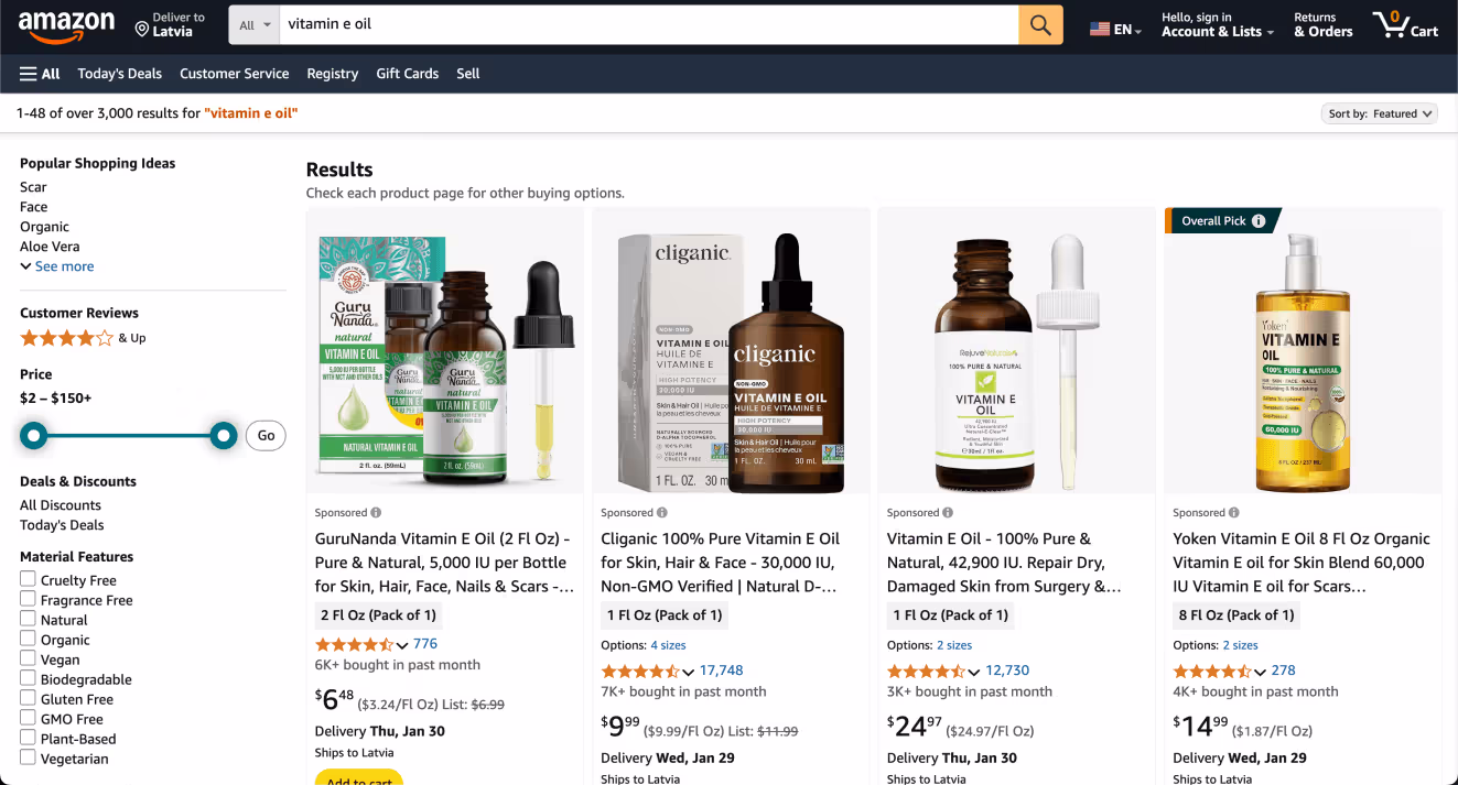 - High search volume for ingredients like vitamin C or hydrating serums.