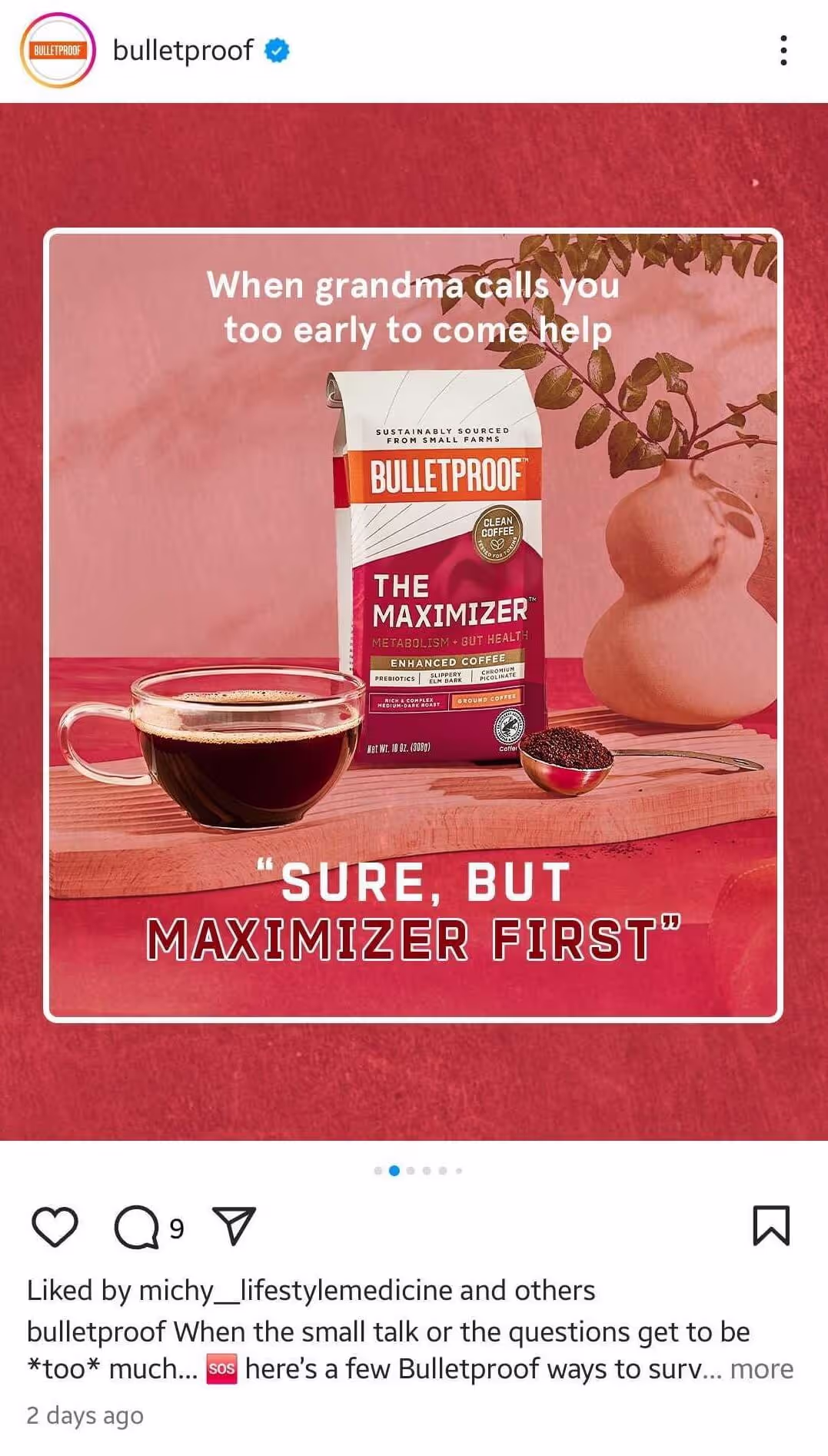 For example, Bulletproof promotes its coffee with posts featuring fun phrases to connect with those who’ll spend their holidays with their family.