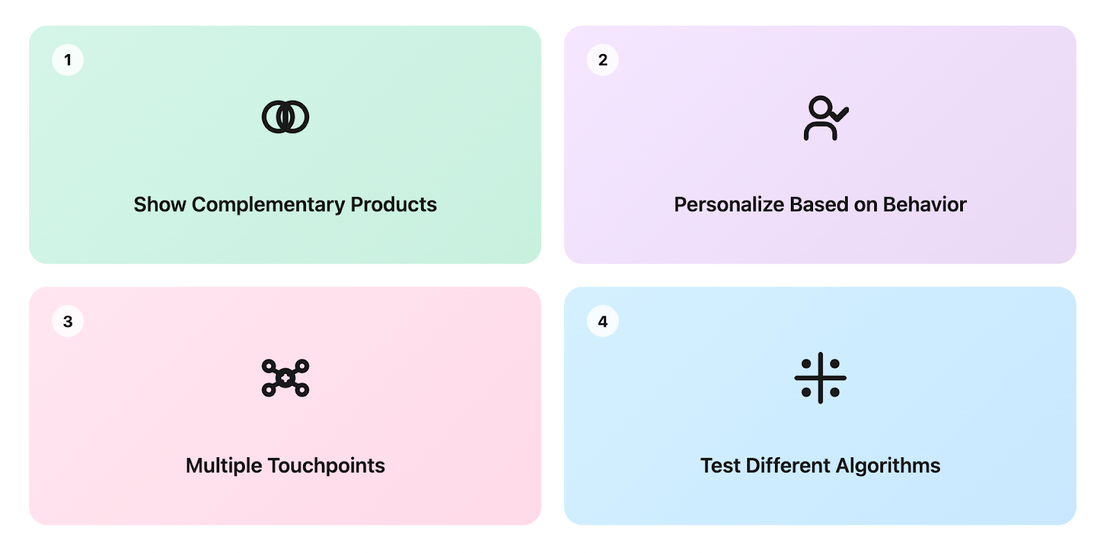 - Position recommendations at multiple touchpoints (product pages, cart, checkout)