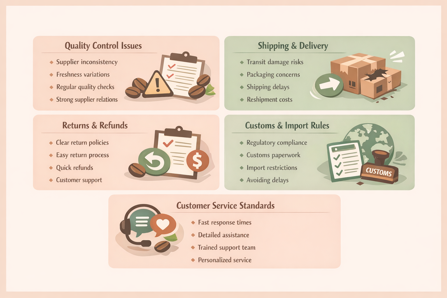 Coffee beans are sensitive to handling and packaging. Damage during transit can lead to dissatisfaction and refunds. Reliable shipping processes are critical for customer trust.