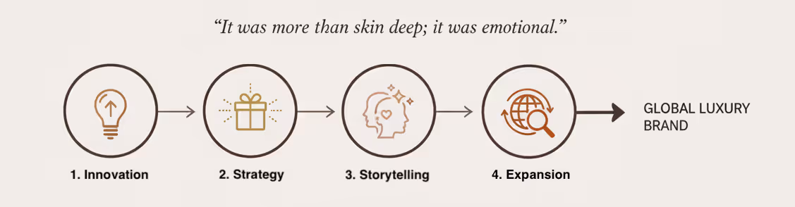 This emotional appeal set her brand apart. She sold not just skincare, but self-worth. And that emotional connection became her brand’s most powerful asset.