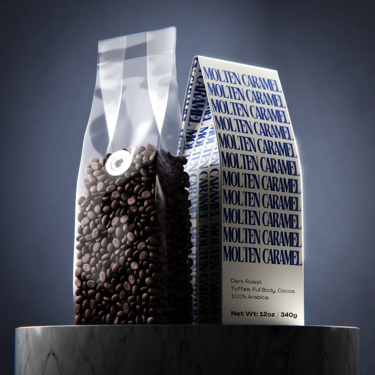 Molten Caramel Coffee delivers a strong taste with rich notes of bakers' chocolate and dark toffee sweetness. This dark roast blend combines beans from Brazil, Mexico, and Guatemala, bringing depth without sharp edges, and a flavor that’s intense yet balanced from start to finish.