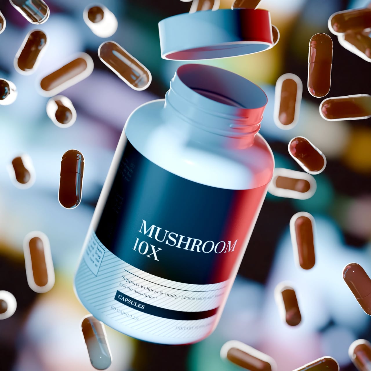 Ingredients: Cordyceps Sinensis Powder, Reishi Mushroom Extract, Shiitake Mushroom Extract, Lions Mane, Proprietary Blend (Maitake Mushroom Extract, Turkey Tail Extract, Chaga Mushroom Extract, Royal Sun Agaricus Extract, White Button Mushroom Extract, Black Fungus Extract, Hypromellose (vegetable capsule), Microcrystalline Cellulose, Magnesium Stearate.