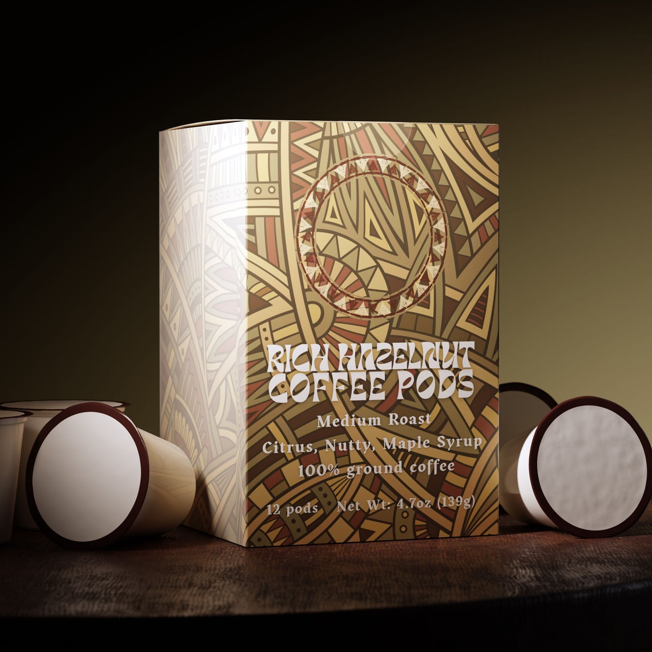 Medium roast coffee pods with chocolate-covered hazelnut flavor, maple sweetness, and a citrus lift, sourced from Brazil and Mexico.